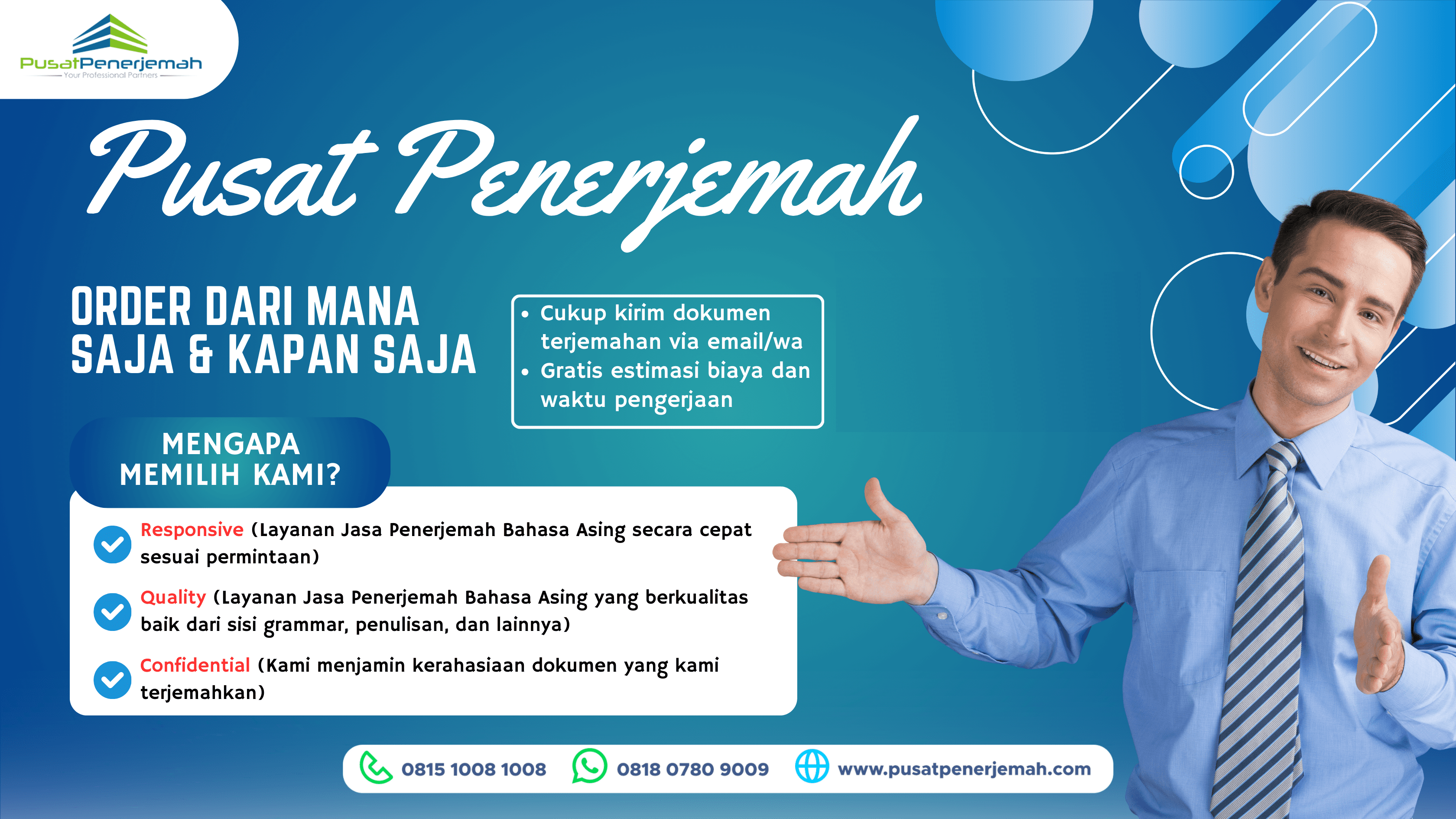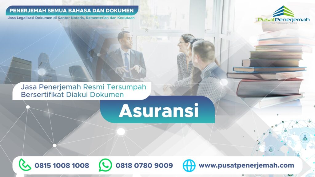 Pusat Penerjemah direkomendasikan karena pengalaman lebih dari 10 tahun dalam menangani dokumen asuransi. Mereka menyediakan layanan terjemahan tersumpah, legalisasi di Kemenkumham/Kemenlu/Kedutaan, serta apostille dengan garansi akurasi, kerahasiaan, dan cepat (24 jam untuk urgent. Harga terjangkau, mulai Rp – per halaman, dan dukungan online untuk klien di seluruh Indonesia. Ribuan klien telah terbantu, termasuk untuk bahasa asing umum.
