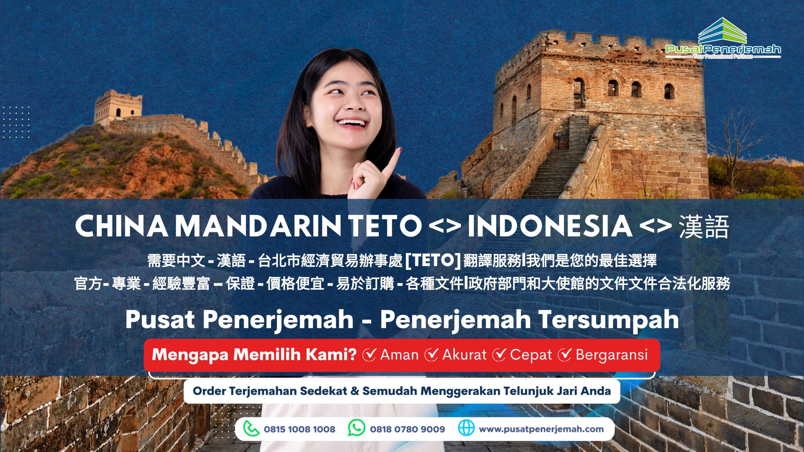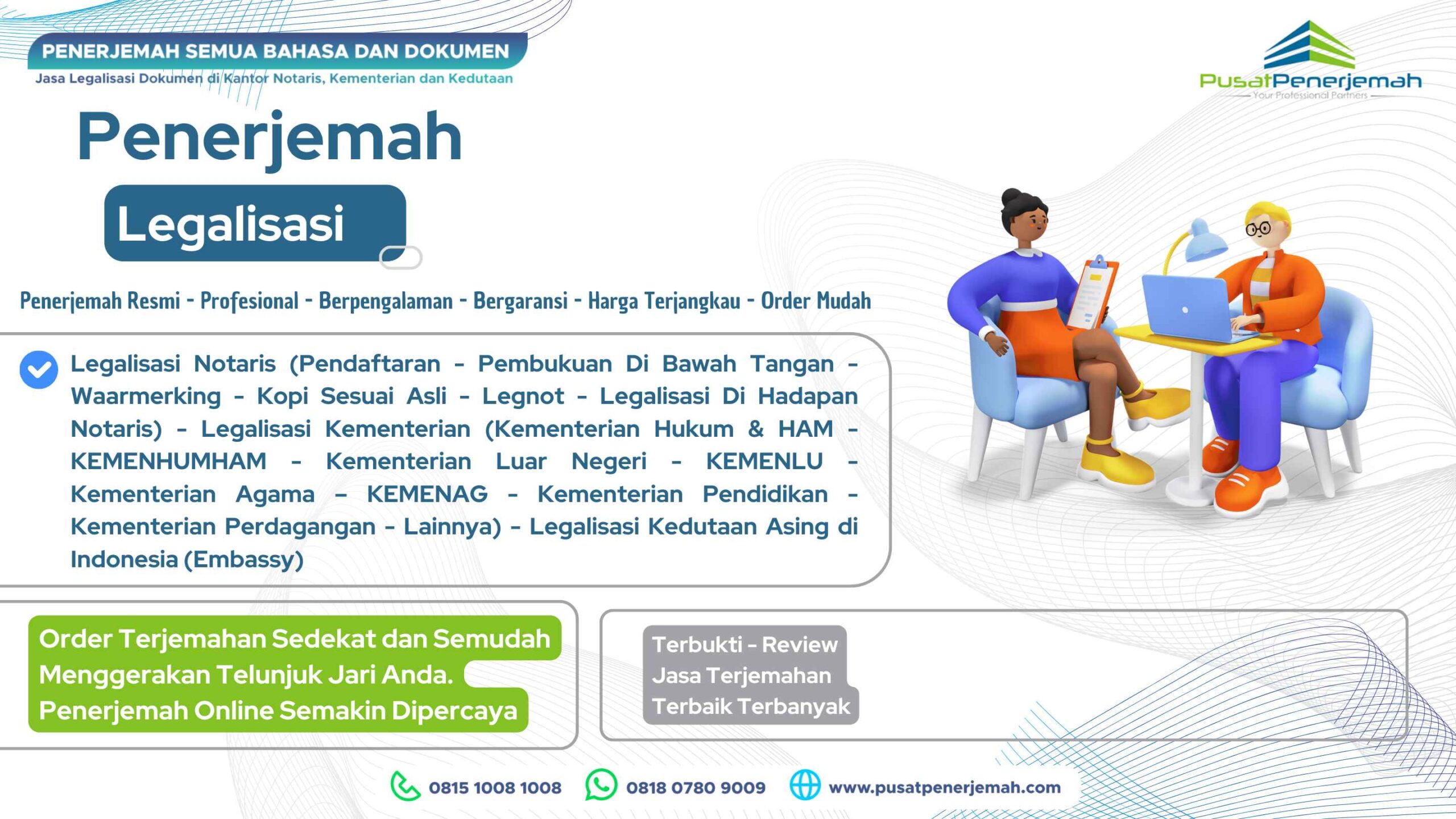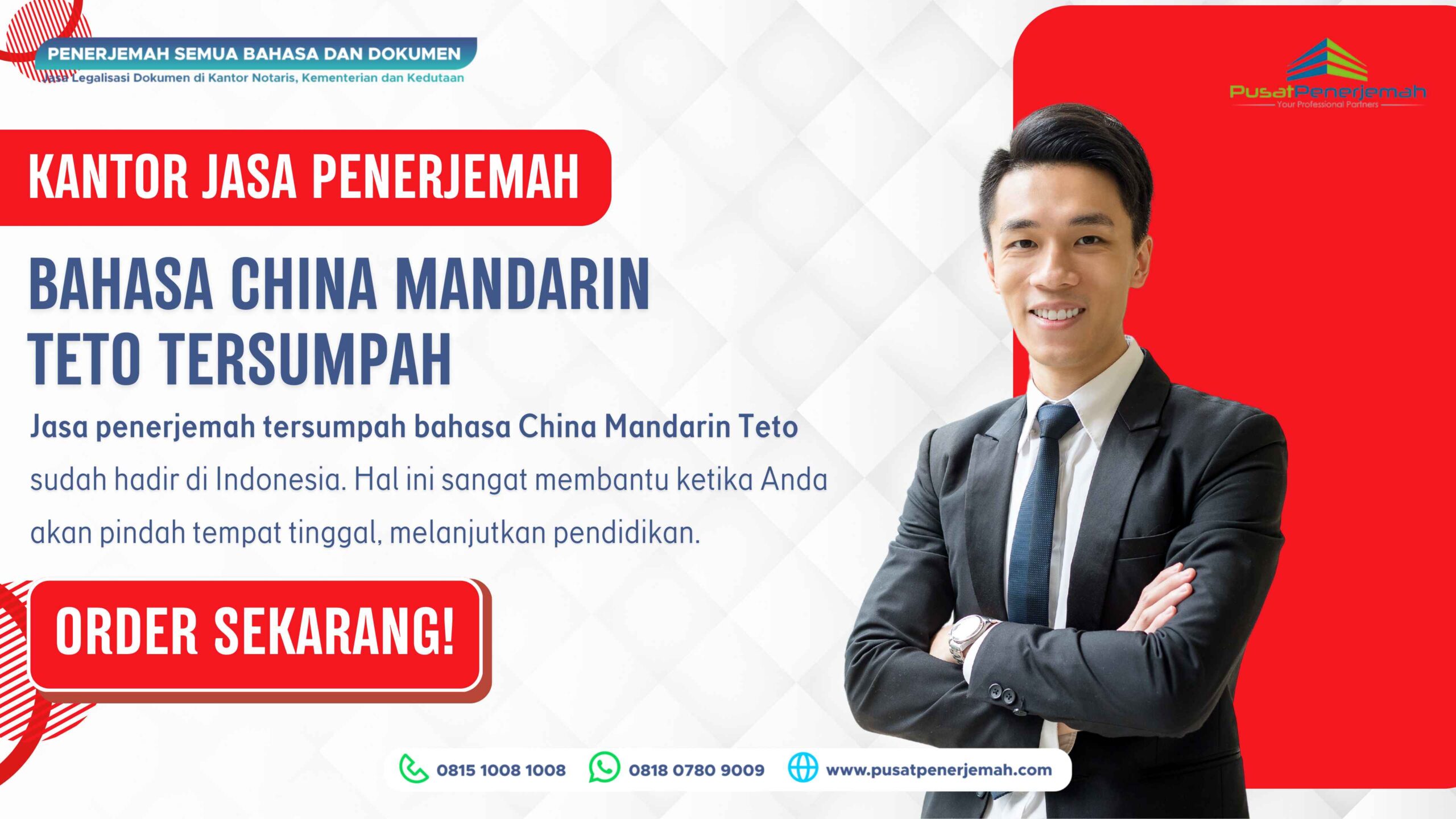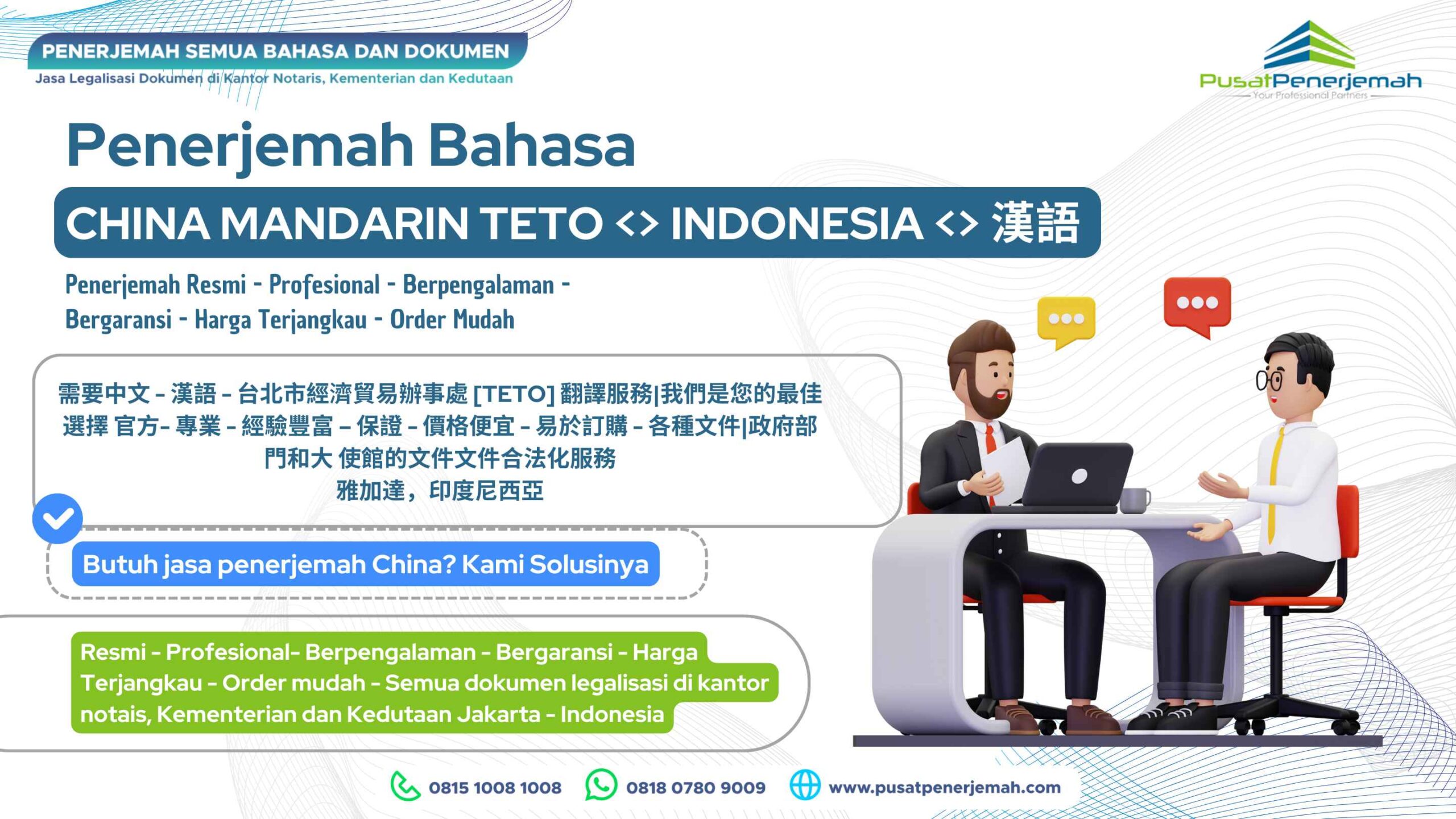 Anda dapat menggunakan  layanan terjemahan penerjemahan tersumpah bahasa Tionghoa dari mana saja bahkan bila Anda di luar swasta, order tejemahan di Pusat Penerjemah cukup mudah, silahkan kirim dokumen Anda via WA atau email untuk mendapatkan estimasi biaya dan waktu pengerjaan secara cuma-cuma dan gratis (gratis estimasi), silahkan hubungi CS kami di nomor Tel. 081510081008 – 081319201920 dan WA. 081807809009.