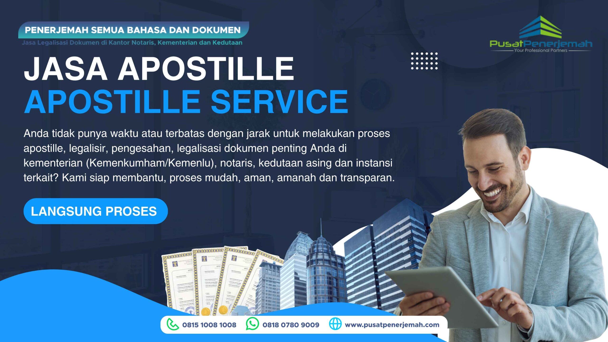 Apostille adalah sertifikat legalisasi tunggal yang diterbitkan oleh Kemenkumham (sebagai otoritas kompeten Indonesia sejak bergabung dengan Konvensi Den Haag 1961 pada 2022). Apostille membuktikan keaslian dokumen tanpa perlu legalisasi berantai lagi di negara-negara anggota konvensi.