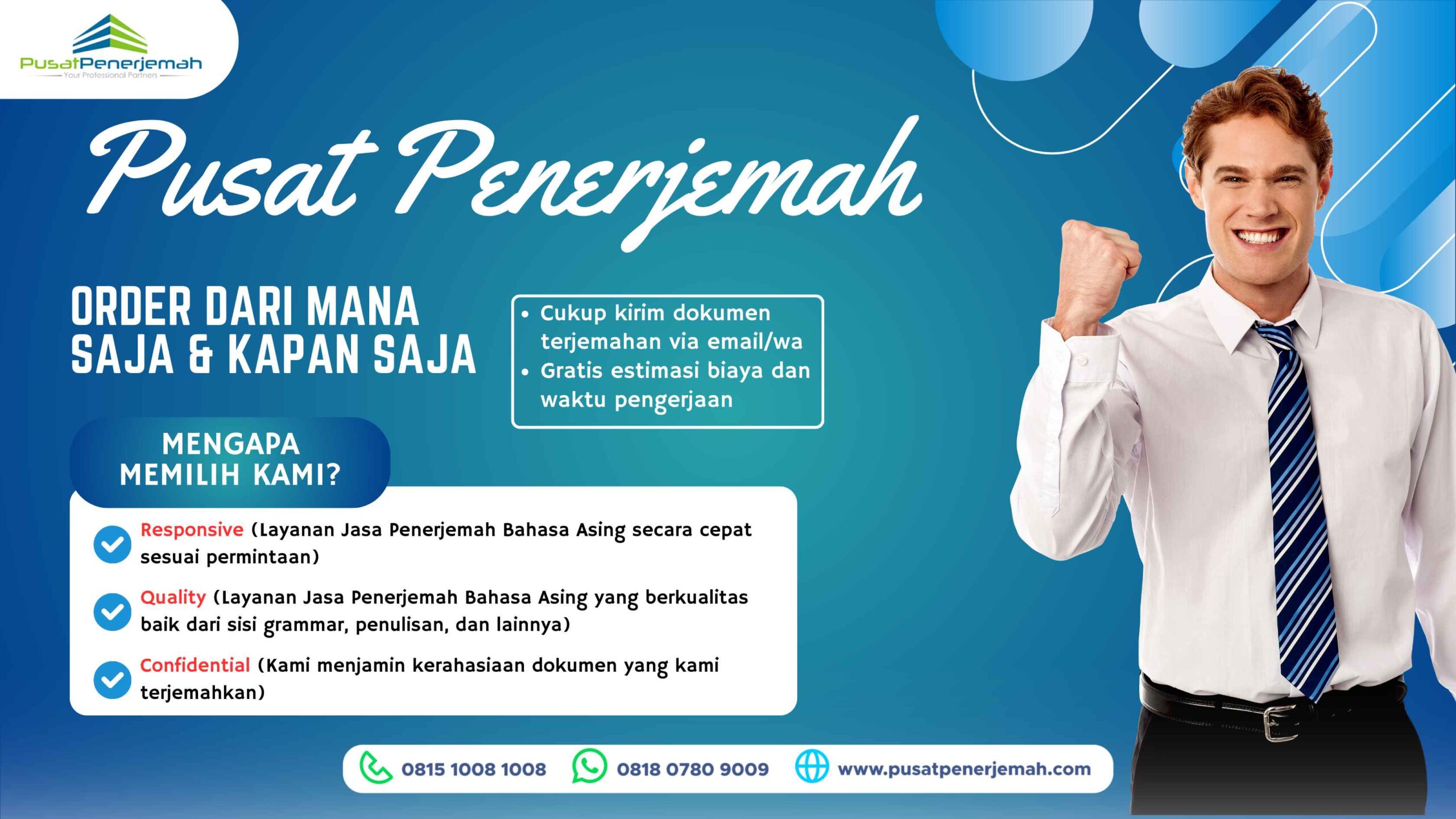 Hubungi Pusat Penerjemah sekarang untuk konsultasi gratis dan penawaran terbaik.